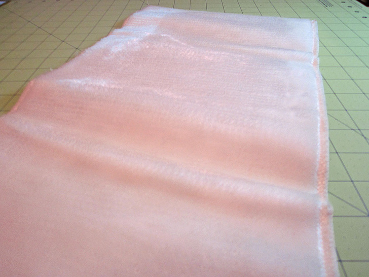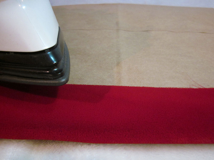 When you start to construct your project, you use the same pressing method. Any seams should be finger pressed open, steamed, then allowed to cool. For hems, place a piece of sturdy paper (a brown paper bag works great) in between the wrong side of the hem allowance and the wrong side of the fabric. It’s super easy to leave an impression in the velvet on the right side; the paper helps prevent this.