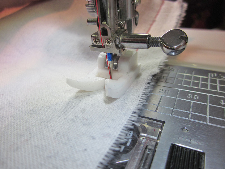 First, you have to use a specialty foot designed to feed bulky layers under the presser foot of your sewing machine. Depending on the make and model you own, you may have one or more in the standard accessories that come with the machine (such as an Even Feed or Walking foot). Or, you may have to purchase an optional foot. In either case, your sewing machine retailer can help you with find the best foot for sewing with velvet on your machine.