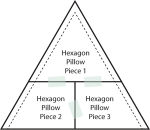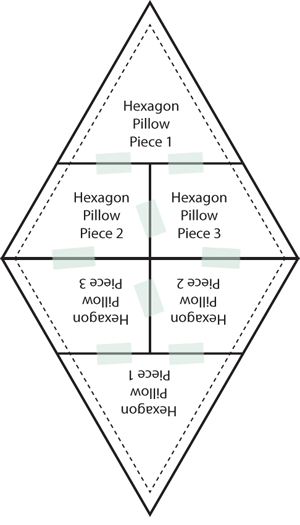 - If creating the hexagon pillow, click the link at the beginning of this sentence to download and print out TWO copies of each of our THREE pattern sheets. These three sheets have been bundled into ONE PDF file to make the download easier: Hexagon Pillow Piece 1, Hexagon Pillow Piece 2, Hexagon Pillow Piece 3.