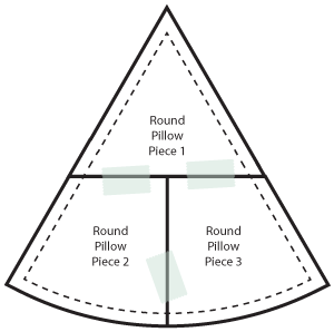 - If creating the round pillow, click the link at the beginning of this sentence to download and print out our THREE pattern sheets; again, these pieces have been bundled into one PDF file to make the download easier: Round Pillow Piece 1, Round Pillow Piece 2, Round Pillow Piece 3.