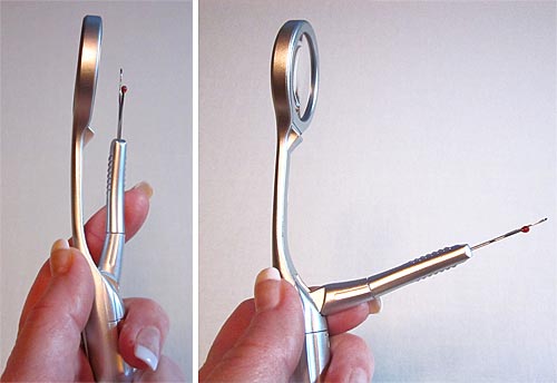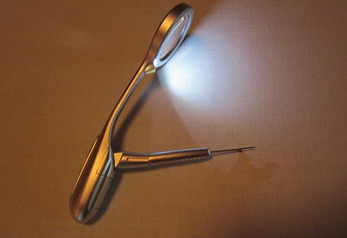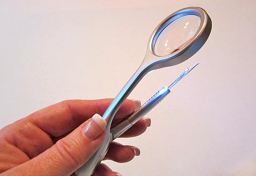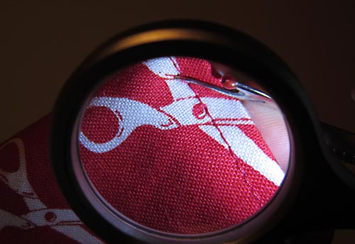 When our friends at Moda Fabrics/United Notions brought this seam ripper to our attention, my first reaction was that it reminded me of the detachable magnifier and High Light features on Janome’s new Horizon Memory Craft 12000. I think manufacturers and product designers are finally realizing we don’t all have the visual acuity of Superman!