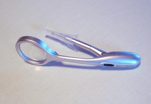 The bright white LED is powered by three micro cell batteries, which are included and can be removed and replaced. The LED is stated to last 100,000 hours and the battery life is listed as seven hours. The batteries are protected with a plastic insert. So, you have to open the battery compartment and remove this insert. I always forget about this little safety measure and so was initially disappointed when I thought the light didn’t work right out of the package. Duh!