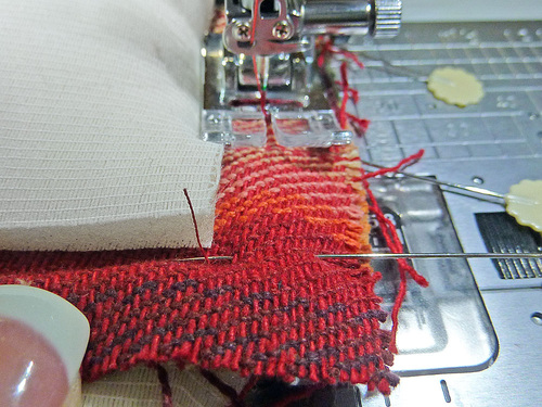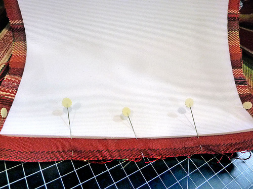 - Carefully unpin the facing and slip the lining into place underneath it.