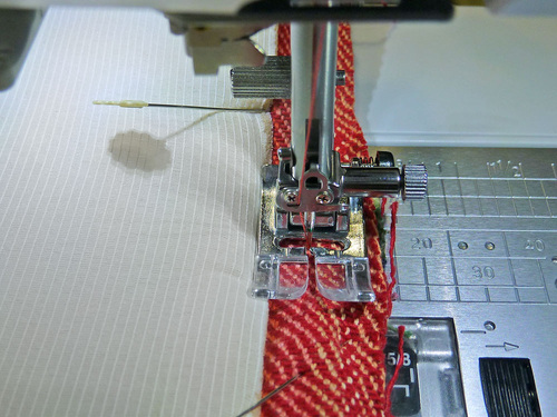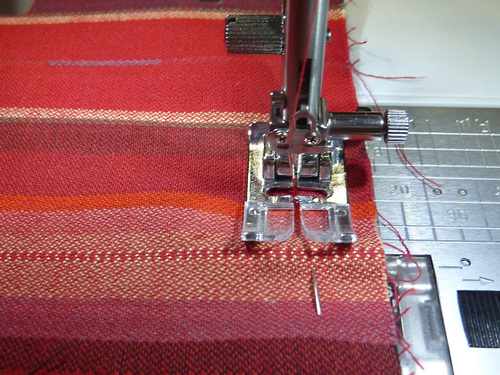 - Lengthen the stitch. Insert a twin needle. Attach an Even Feed or Walking foot or similar. We used the AcuFeed™ Flex feeding system, which helped keep our thick layers from shifting and worked great with the twin needle. Whether you use a single or double line of stitching, we do recommend an Even Feed/Walking foot for this step.