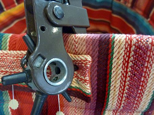 - Use a hole cutter or awl to pierce a hole through all the layers at your marked points.