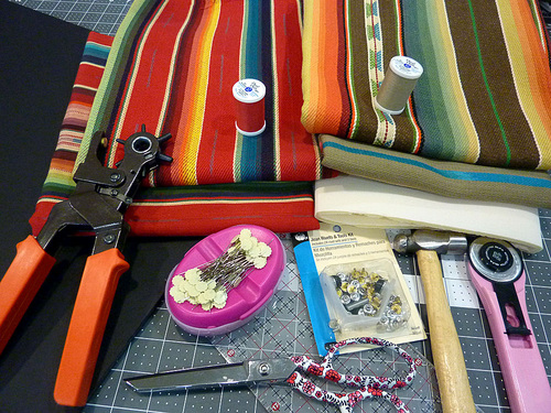 - We used Dritz Jean Rivets and a Dritz Rivet Tool to insert our eight rivets.