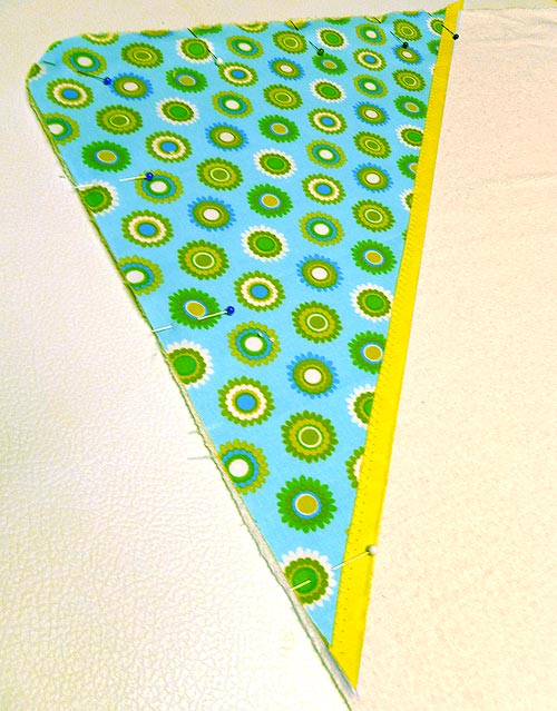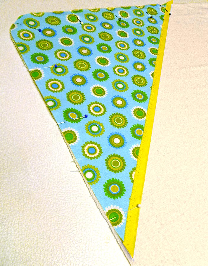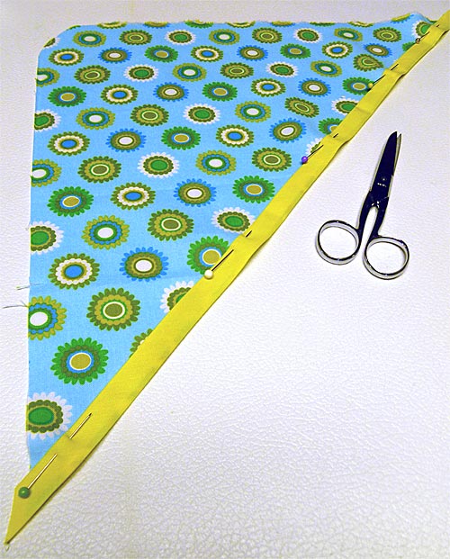 - Machine baste the terry cloth and fabric triangles wrong sides together around the entire perimeter so you can treat the two pieces as one.