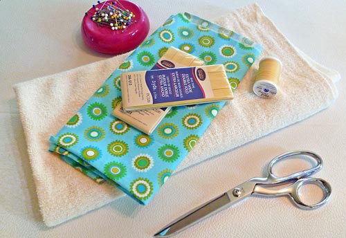 - 1¼ yard of 44″+ wide terry cloth for the body of towel and the washcloth; don’t go super thick unless you plan on making your own wider bias binding