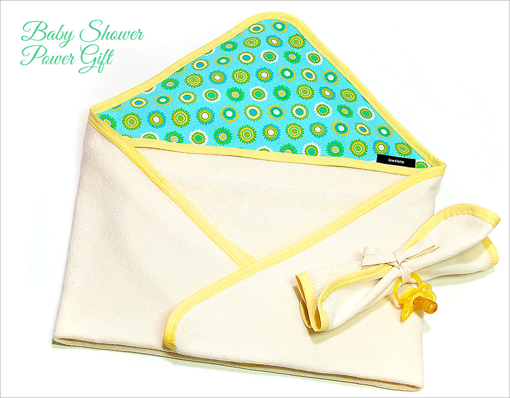 This is absolutely one of the best baby gifts ever! Bundling up baby after bath time with a hooded towel is easier and cozier. The hood doesn’t just help dry those newly clean mop tops, it actually acts as a little anchor, allowing mom or dad to more quickly wrap the rest of the towel around squirming, slippery baby-boo. Ours features a cotton accent fabric for the hood and a matching bound washcloth. Downloadable patterns are offered below.