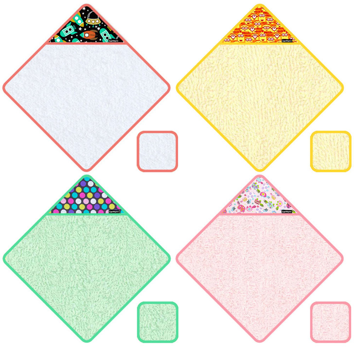 Our friends at Fabric.com offer a nice selection of terry cloth in both traditional white and natural as well as pretty colors. The fabric accent uses just a half yard, so you could buy new or dive into your stash for a colorful print. A few favorites we spotted include clockwise from left: Michael Miller Space Station Retro, Universal Despicable Me 1 In A Million Bello Minions Orange, Michael Miller Retro Diddly Dot Orchid and Child’s Play Turtles PInk, which we’ve shown in the drawings below.