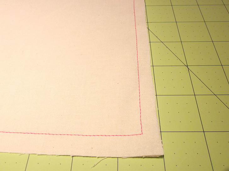 In this example, we’re assuming you’re working on a project that has sewn corners and is shaped like a square or rectangle. If you’re following a pattern or tutorial, the boxed corners (as well as the exact measurements) will be indicated.