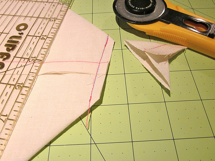 - Trim away the peak to ¼” – ½” from the line of stitching.