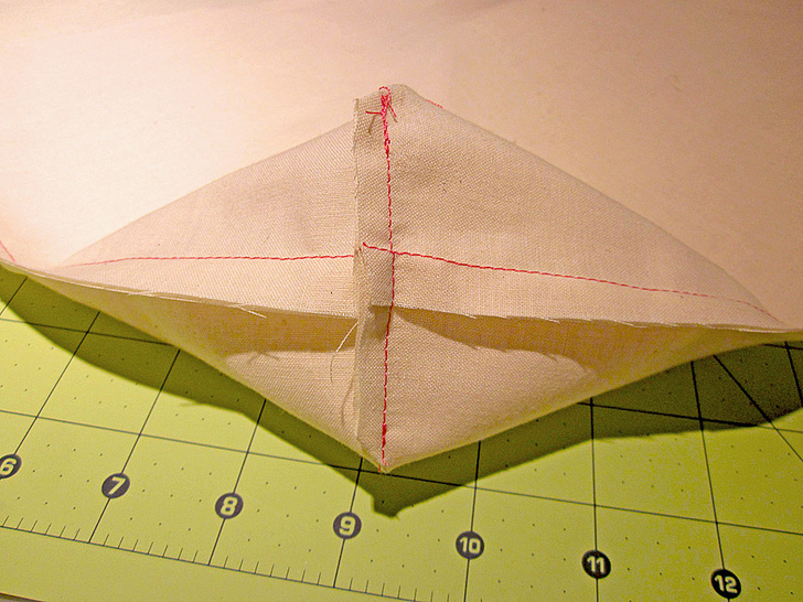 The other detail to remember is seam allowance. You want to use the exact same seam allowance across the box corner seam as was used for your side and bottom (or adjacent) seam allowance.