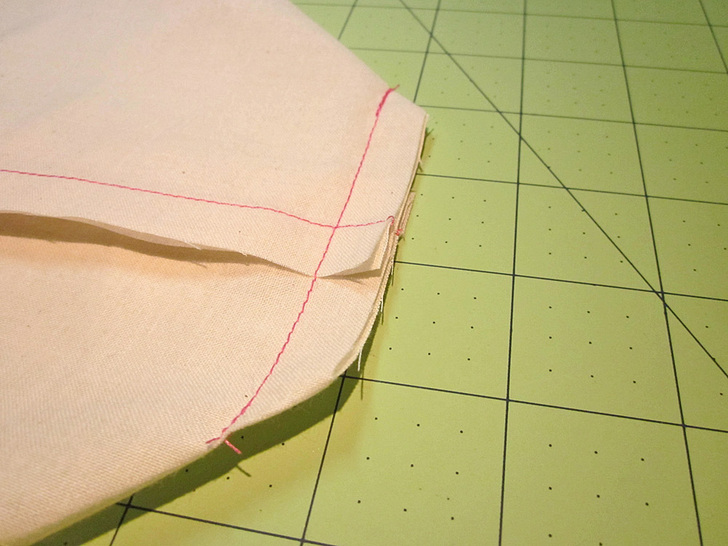 - Sew across the peak on the drawn line. Be sure to backstitch at the beginning and end of the seam.