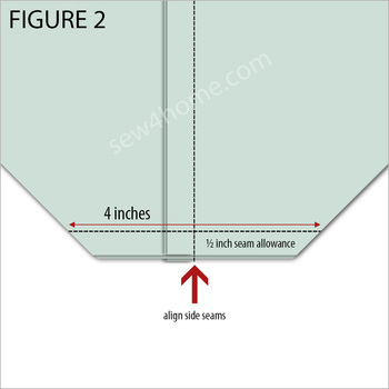 - In the same manner as the basic box corner above, carefully match the side seam with the bottom or adjacent seam. Pin in place. The seam allowances should be facing in opposite directions.