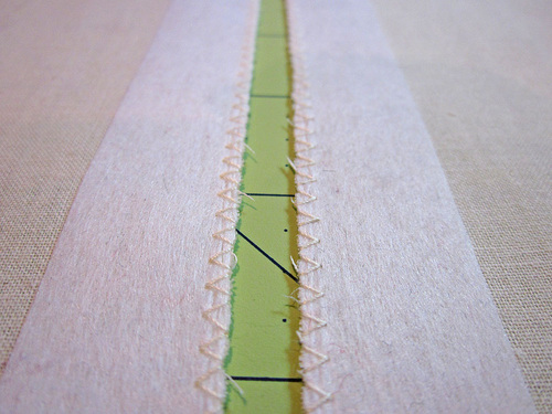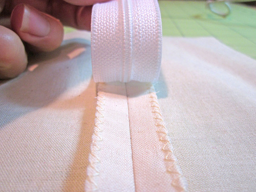 Guideline: Depending on the type of zipper you’ve purchased, the tape may have a subtle indentation along either side of the teeth. This where you sew when doing a basic installation.