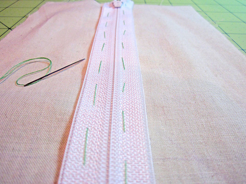 - Here are the alternatives: You can hand baste the zipper in place with needle and thread. We prefer to do this. Why? Because it gives us the most control over the placement of our zipper.