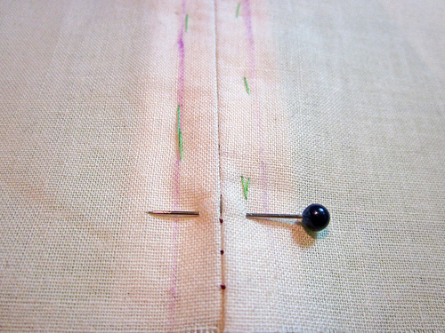 - With your zipper secured (using your favorite option from those listed above), mark where the bottom stop is by placing a pin (or drawing a line) just beneath it on the right side of the fabric.