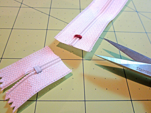 - If a separating zipper needs shortening this should be done from the right side. Using the same method as above, create a thread stop on either side of the zipper.