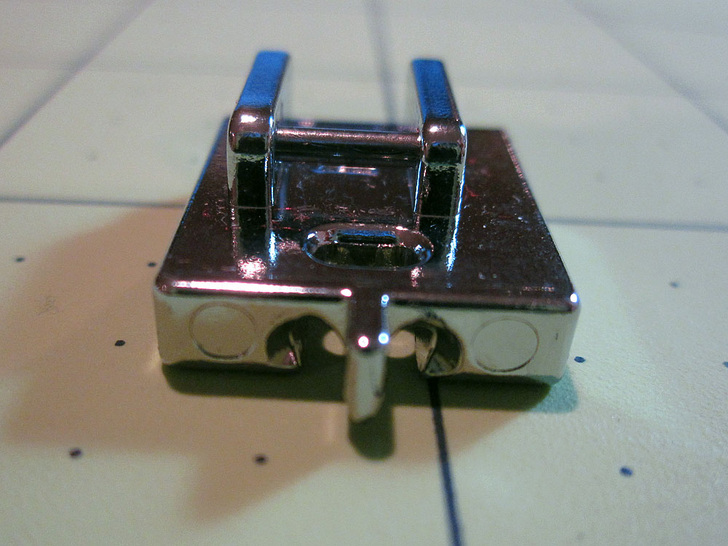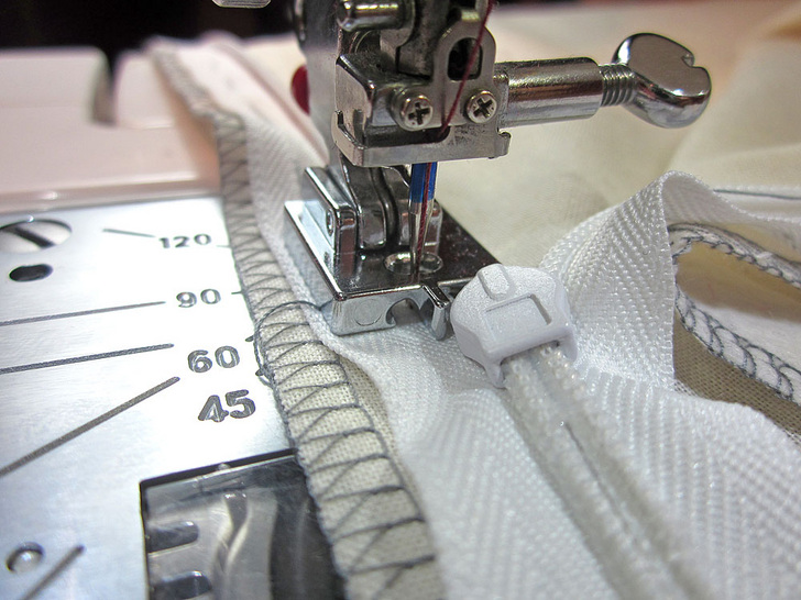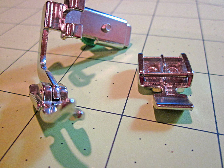 - Adjustable zipper foot: (Above left) This is an optional foot for most sewing machine models. It also allows you to sew very close to the zipper teeth. You can use this foot for installation and along the bottom of the zipper for the remainder of the seam.