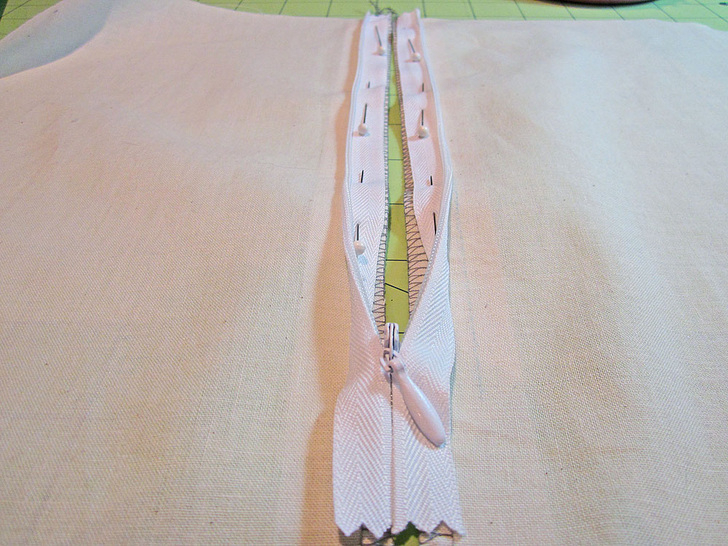- This is another key step! You have to be accurate with the zipper placement. First, if at all possible, do not sew any portion of the seam prior to installing an invisible zipper. This zipper is best installed with the two sides of the seam loose from each other. Place the two interfaced/finished fabric pieces right side up on your work surface.