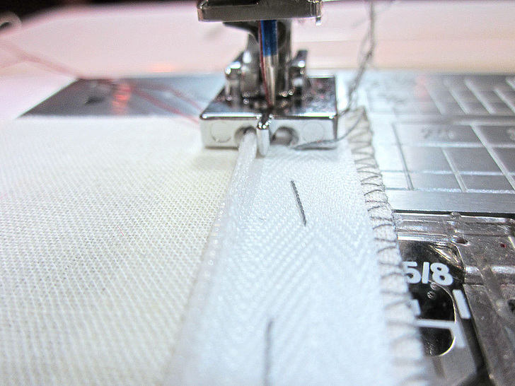 - For an added finished look, you can sew another line of stitching along the edge of the zipper tape and seam allowance edge to secure the zipper in place.
