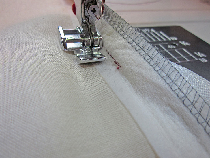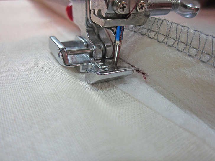 - Before beginning the installation process, consider finishing the raw edges of your fabric. A finished edge makes it less likely those little stray fabric threads will get caught in the zipper once it’s in place. For our example, we chose to use an overlock stitch on a serger. You can do the same, or use an similar overedge stitch on your sewing machine, such as a zig zag.