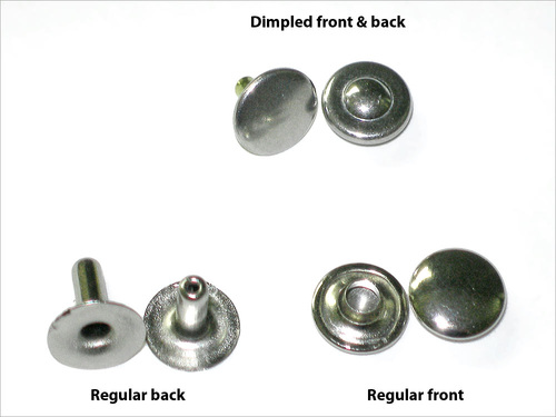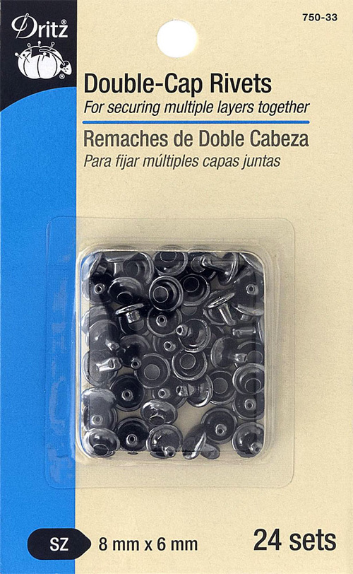 ) or silver (nickel). The cap of the rivet sometimes offers a bit of decoration. You can find engraved decorative rivets , and there are even rivets with crystal or semi-precious stone caps. Remember, you are striking the top of the rivet with a hammer, so the more decorative options do require extra protection (covering with a cloth or leather) and care when inserting them.We’ve become big fans of the Dritz® Double Cap Rivets which have a smooth curved cap on both the front and back and come in several finish options. This gives you a pro look from either side and is especially nice for strap and flap applications where you can almost always see both sides on your finished project.