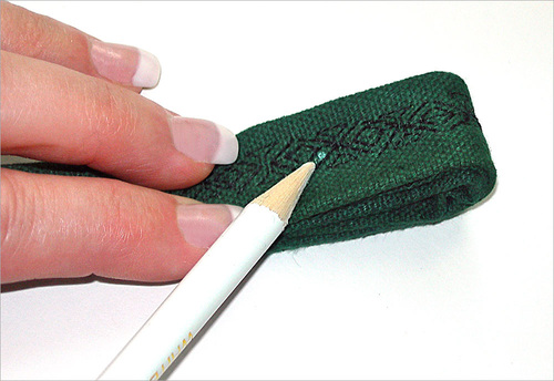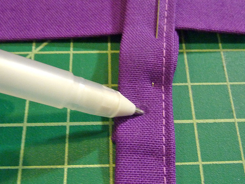 - With a fabric pen or pencil, mark the exact point where you want the CENTER of your rivet to fall. Make centering marks on