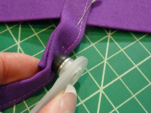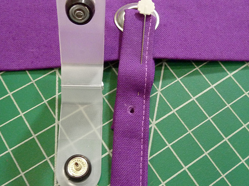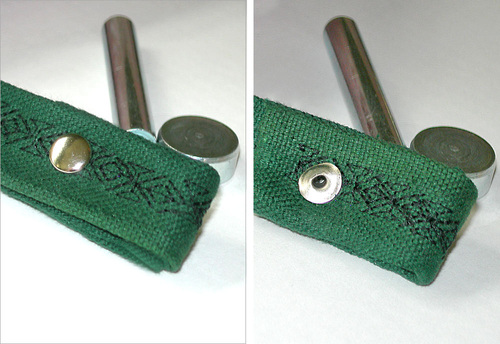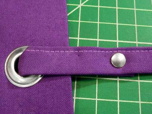 A final note: There really isn’t any great way to take a rivet out of a sewn project; they are designed to be permanent after all. We have had some luck carefully cutting them out, then filling the hole with a fabric and interfacing patch — trimmed very closely — you can then install a larger rivet, a snap or a button to cover up the repair.