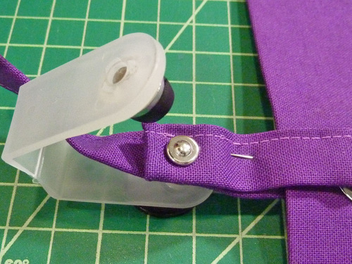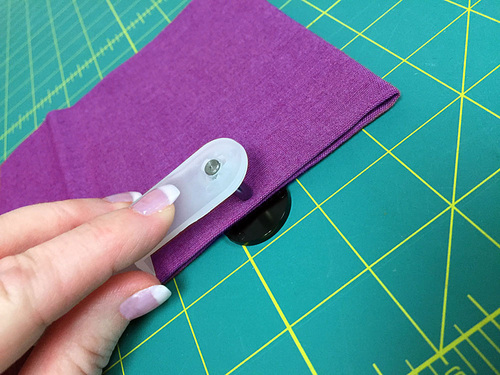 - The stud (which is the cap/front of the snap) is inserted first through the fabric.