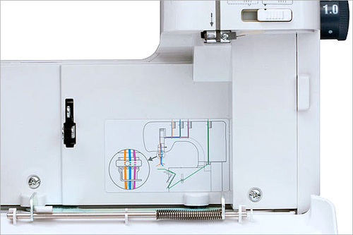 - To release the threads and create a secured stitch, turn the hand wheel towards you until the needles are in their highest position.