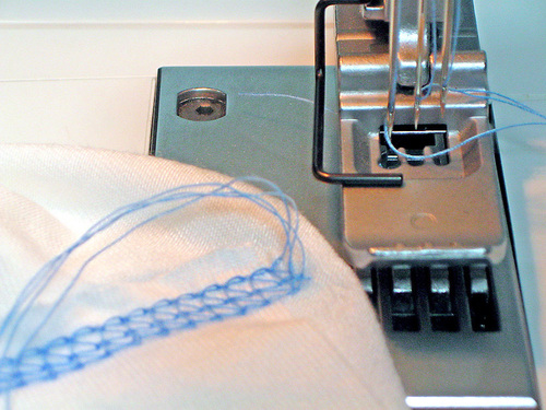 The type of hem: 3 thread, 2 thread or chain stitch, is decided based on the number of needles and the finish you desire. See the Samples section below for more information.