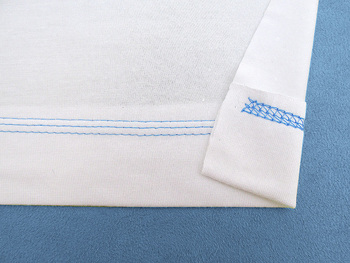 2 thread narrow – 2 needles: 2 needle hems are good quick-finish hems for things like T-shirts and pajamas. The width you choose is simply a matter of personal preference.