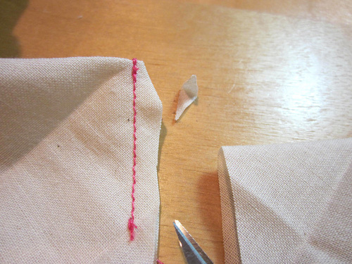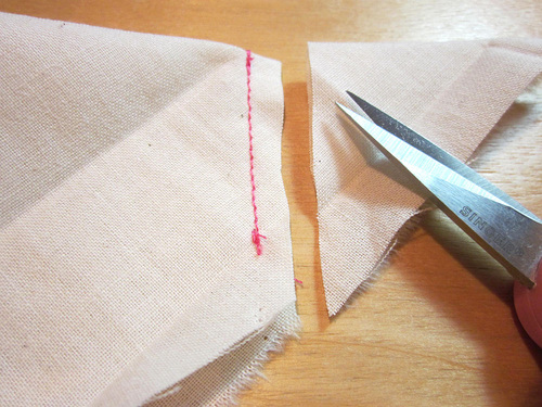 - Trim the away excess ‘triangle’ to ¼” from the sewn seam.