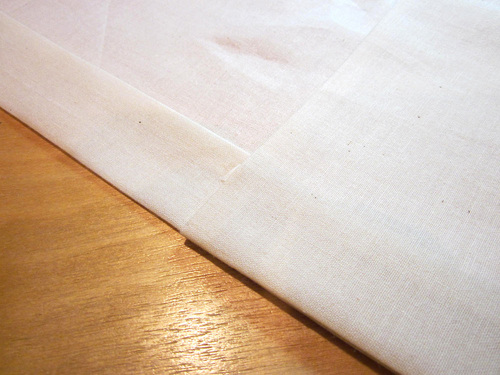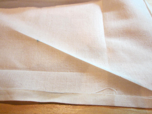 - Unfold both hems to reveal the crease lines. The point where the crease lines intersect is where you will begin to sew the corner hem.