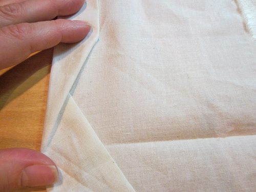 - Fold and press the bottom hem ¼”. As above, the bottom hem will overlap the side hem.
