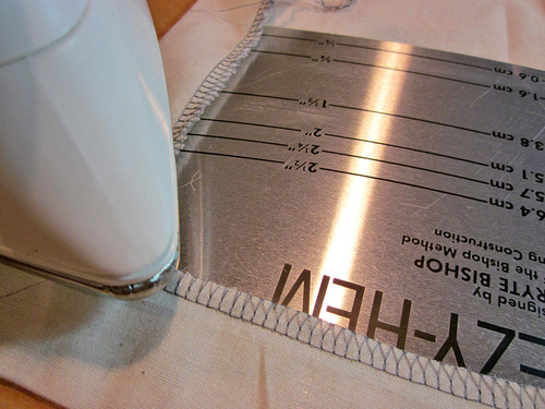 - As above with the equal depth hems, using a straight stitch, sew along the inside fold to secure and complete.