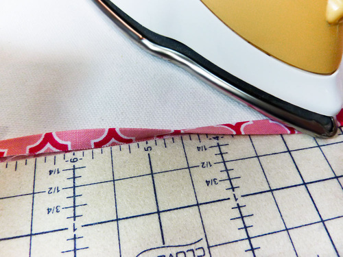 Fold back another ¼” all around, concealing the raw edge between the folds. Press well. For both folds, you need to press firmly enough to set visible crease lines.