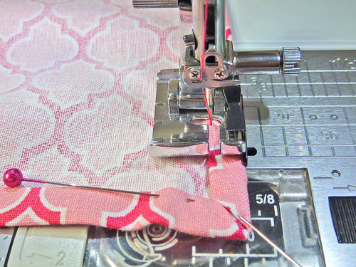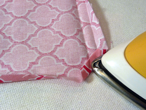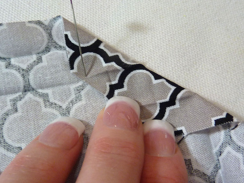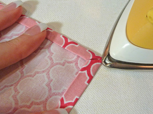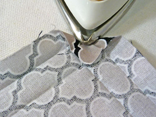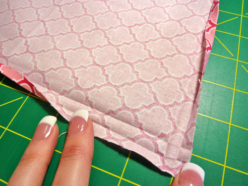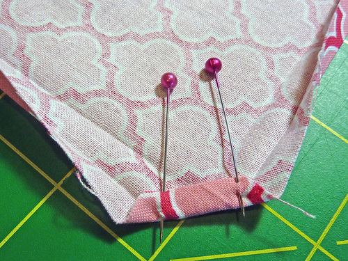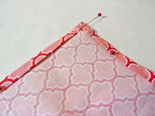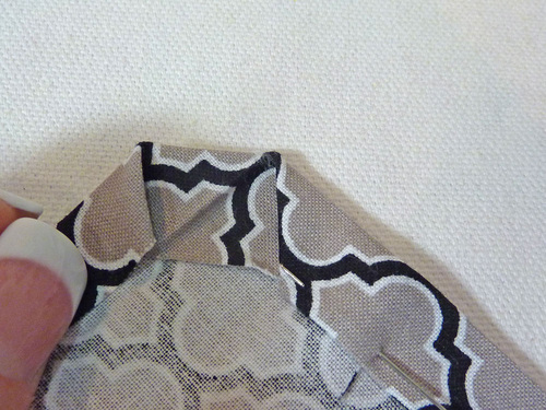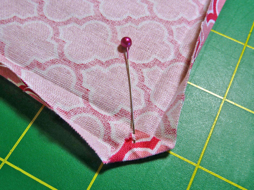 Cotton fabrics usually stay in place with just pressing, but you can pin the corner point folds for extra security or when working with slippery or bulky fabrics.