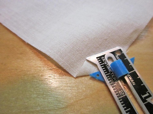 - Press the fabric to the wrong side along one side, starting at the clipped edge, in the same manner as if starting a basic rolled hem.