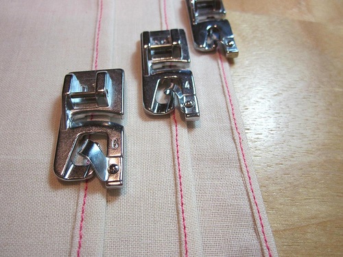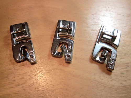 Determining which foot to use is fairly simple. The weight or thickness of your fabric will be your guide. The thinner the fabric, the thinner your rolled hem can be. Or, you may determine which one to use based on the depth of the rolled hem itself, especially if you are planning a decorative effect. Create a rolled hem with each size foot on a few scraps to test your decision.