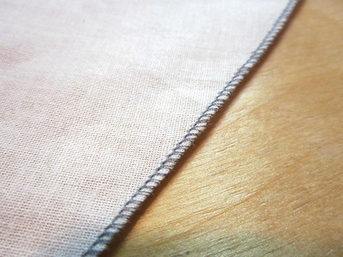 Since we’ve mentioned it, we thought it would help for you to see what a rolled hem looks like when created with a serger. The premise is the same. The raw edge of the fabric is folded under and stitches hold the fold in place. However, since the nature of a serger is much different than a sewing machine, the edge of the fabric is trimmed, folded over, and wrapped with a 2-thread or 3-thread overlock stitch along the folded bottom edge all at one time – in one pass through the machine. This may look familiar to you from items you’ve purchased in stores.