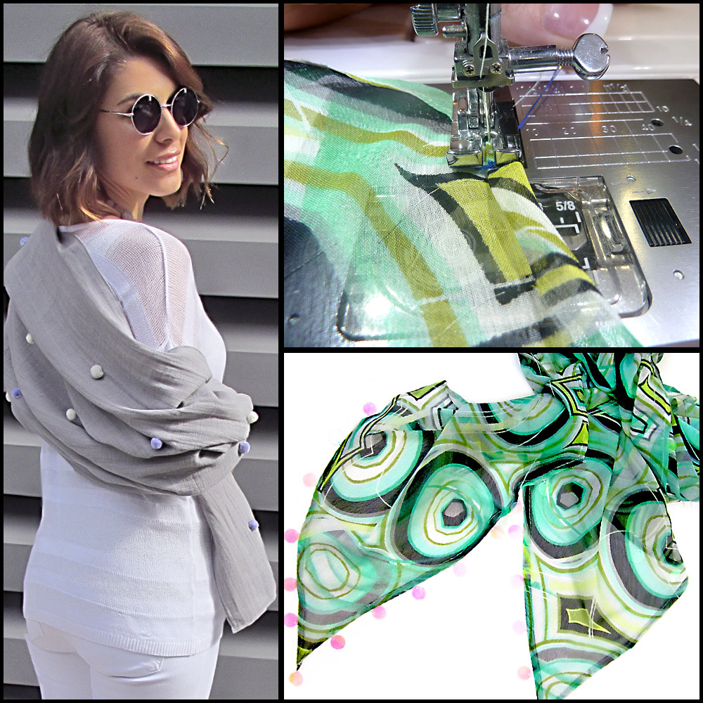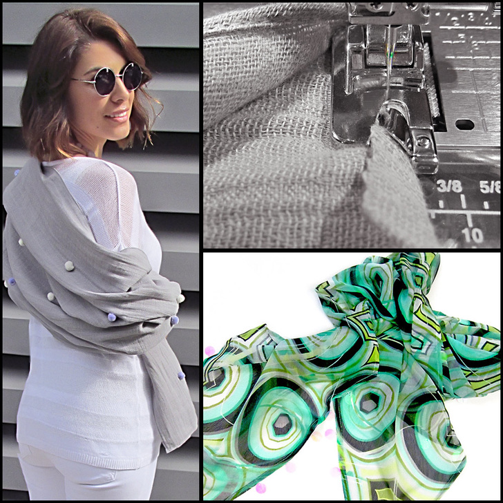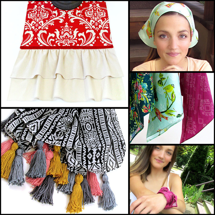 Clockwise: Ruffled End Table Runner, Boho Bandanas, and Tasseled Chiffon Scarf.