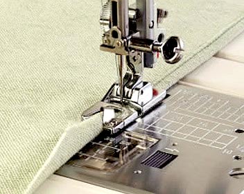 You can also try a “rolled hem.” This type o hem is the narrowest you can easily make with your sewing machine. On many machines you have a presser foot called, yep, a Rolled Hem foot to help you do the job. This specialty foot comes standard on many machines, like the Janome models we recommend at S4H, or you can purchase it separately.