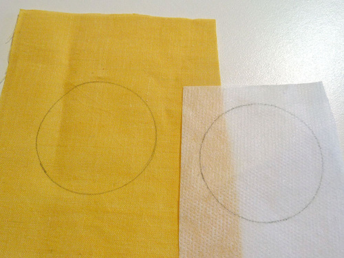- Using the template, trace a circle onto the fabric and the interfacing.