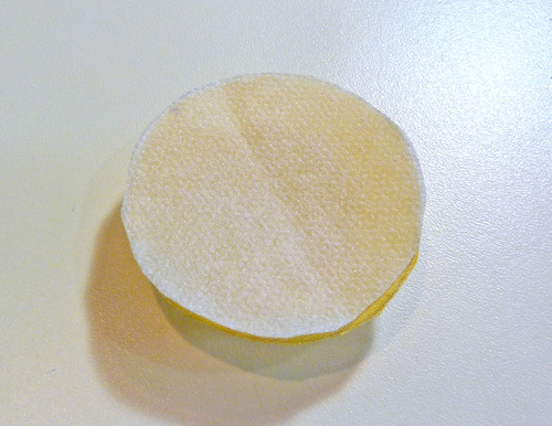 - Cut out both circles and, following manufacturer’s instructions, fuse the interfacing to the wrong side of the fabric.