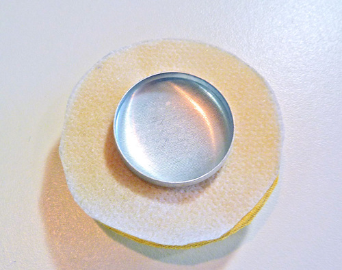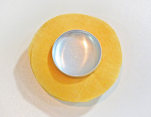 - Center the button shell on the fused fabric circle; it should be directly above the mold.