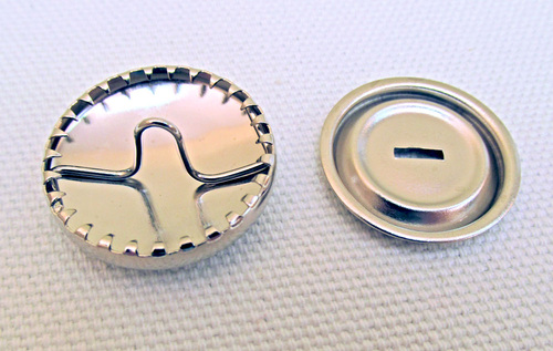 A few kits come with both a shank button back and a plain button back. The shank back is what we use since we are always sewing on our covered buttons. If you’re using buttons for scrapbooking or jewelry, the flat back is best.