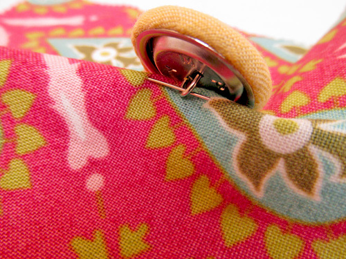 One of the benefits of covered buttons is being able to get the exact color you want for your accents. You can also fussy cut your fabric to center a pretty motif at the top of your button.